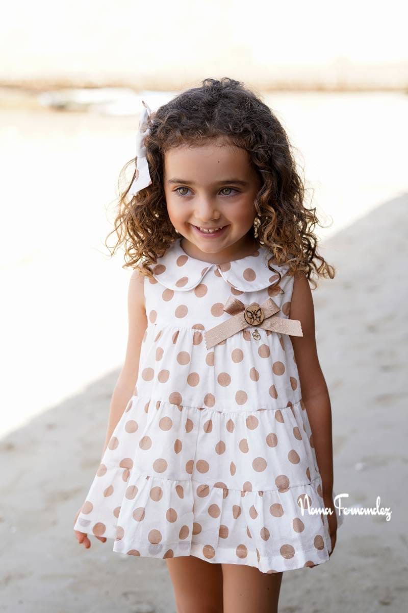 JESUSITO HAYA de NOMA FERNANDEZ, vuelo, fondo beige con topos grandes camel, verano 2026.