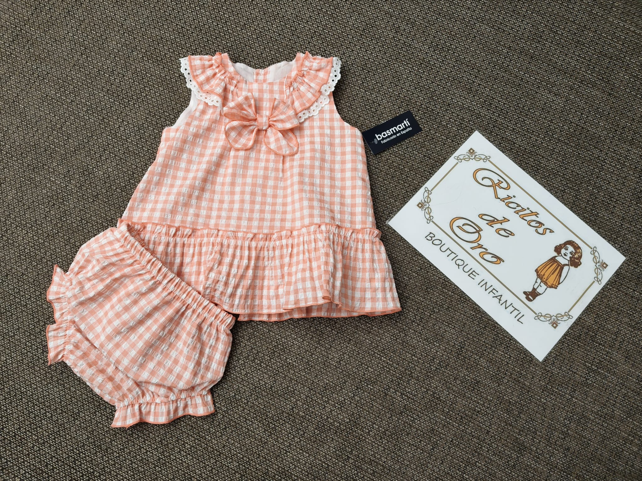 JESUSITO SAMBA de BASMARTI, vichy naranja con puntilla blanca, verano 2026.
